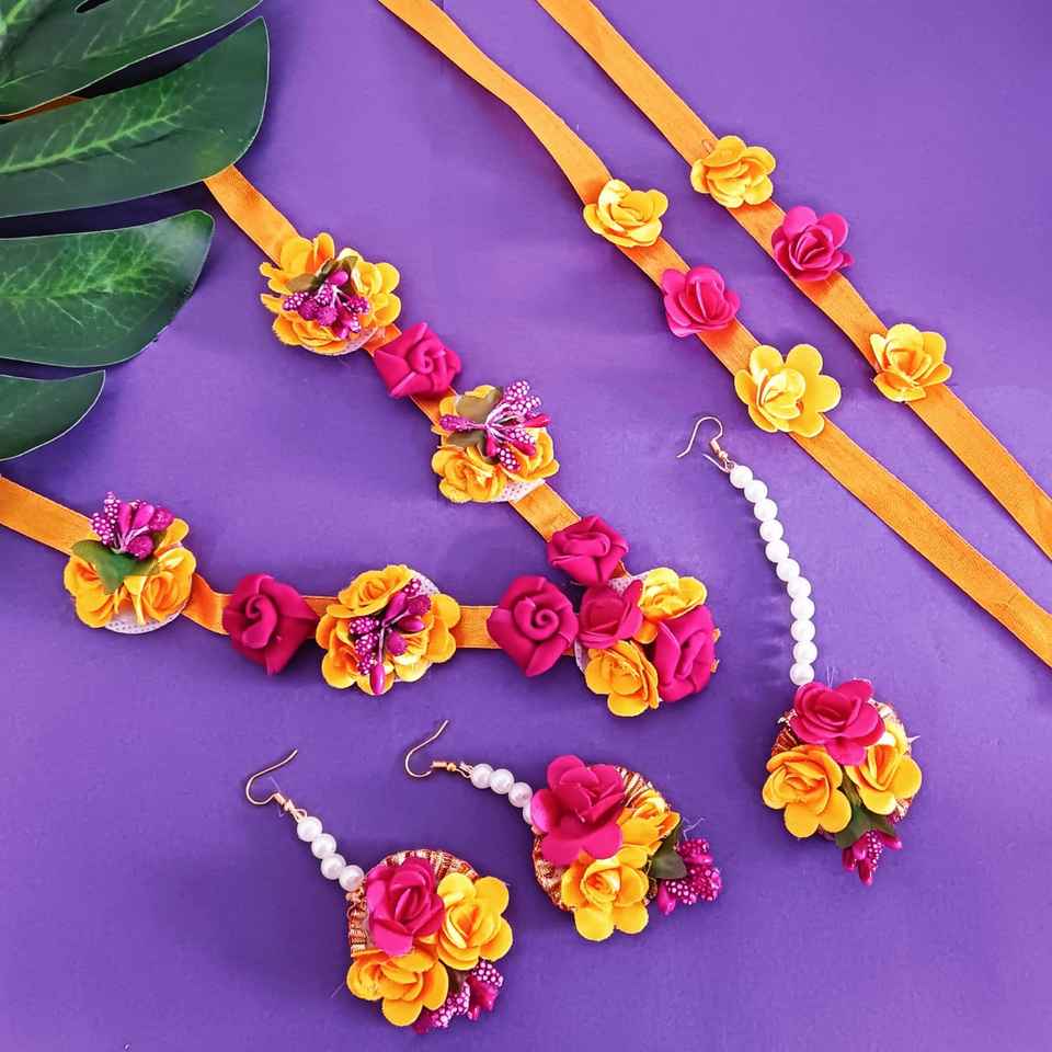 ออกแบบ:Haldi ดอกไม้ออกแบบ Strand Gota patti สร้อยคอชุดเครื่องประดับ