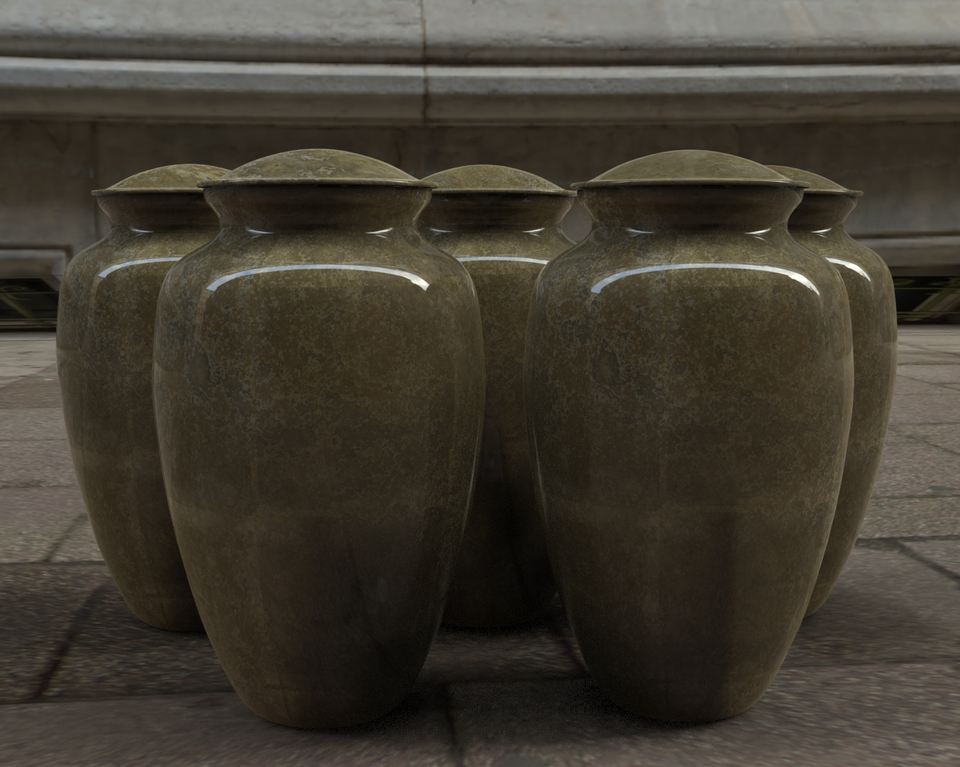 โกศบรรจุอัฐิโลหะลายหินอ่อนเขียวอมเทา สำหรับงานศพ