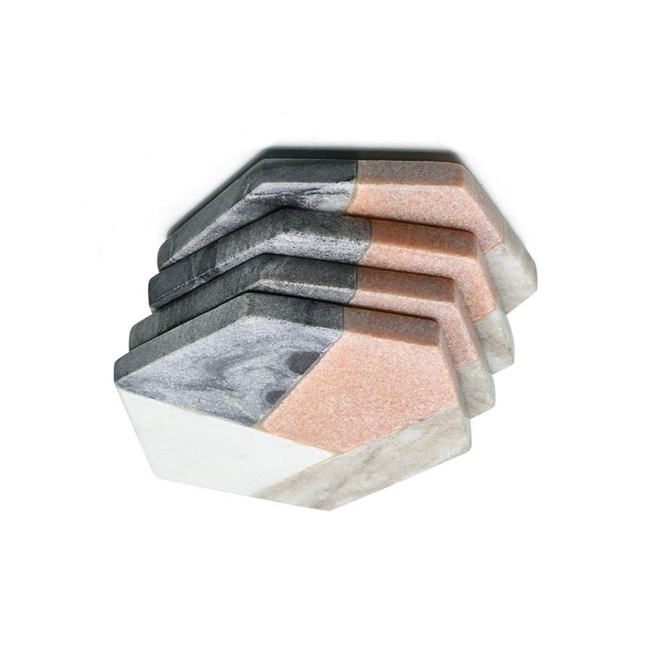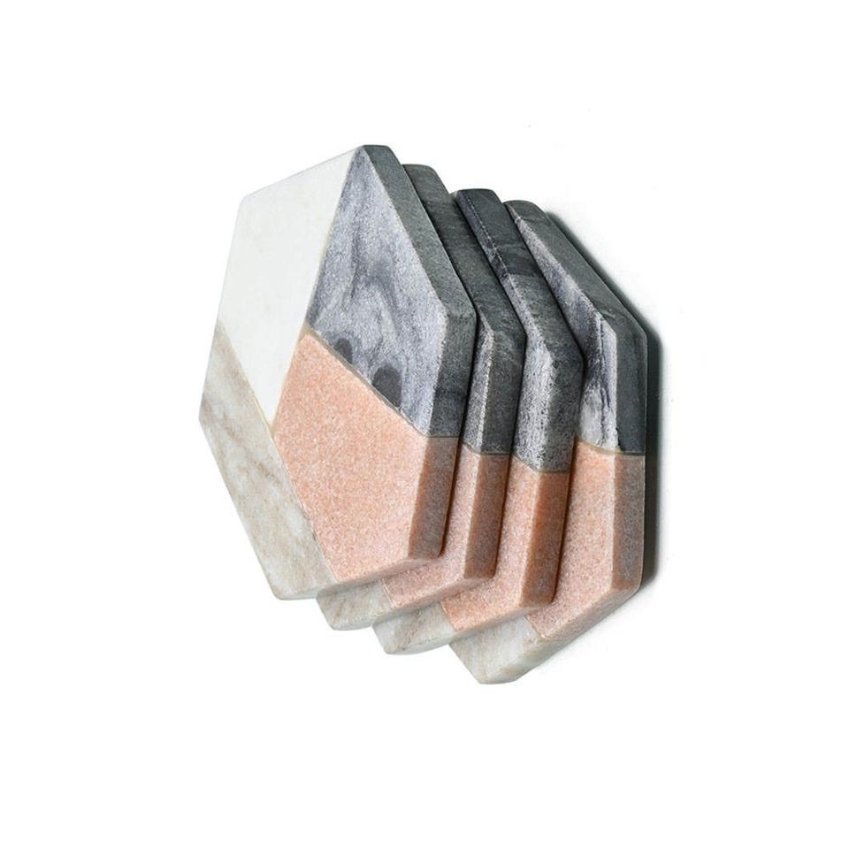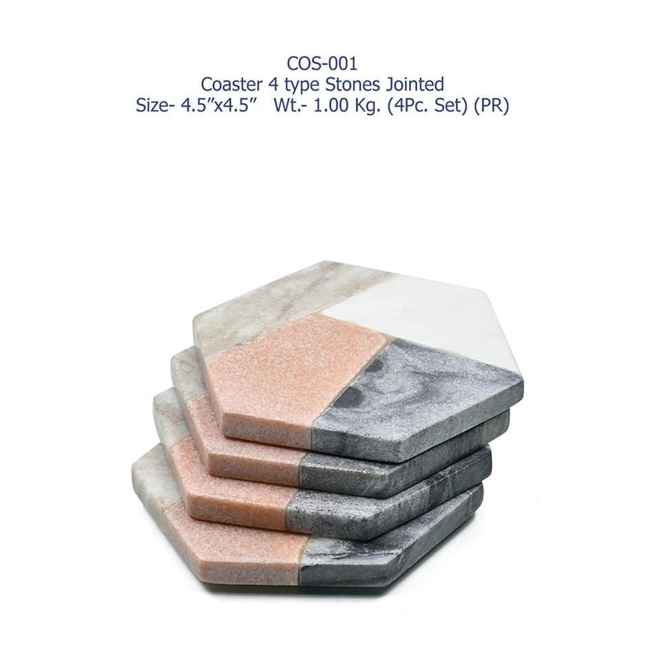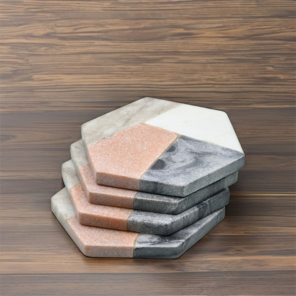 ชุดถาดรองแก้วหินหลายชั้นรูปทรงหกเหลี่ยมพร้อมเครื่องใช้บนโต๊ะอาหารสำหรับบ้านและโรงแรมงานฝีมือในอินเดีย