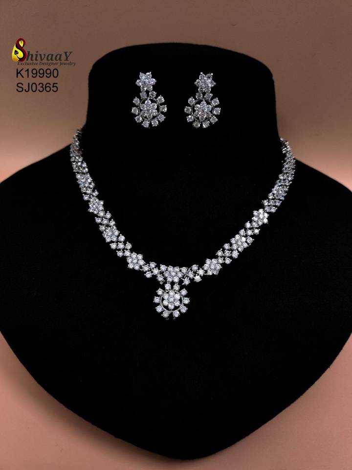 ชุดสร้อยคอและต่างหูเจ้าสาวแบบอินเดียคลาสสิกชุบทองคำสีกุหลาบประดับเพชรซิร์คอนสำหรับงานแต่งงานและวันครบรอบ ผลิตโดยผู้ผลิตชาวอินเดีย