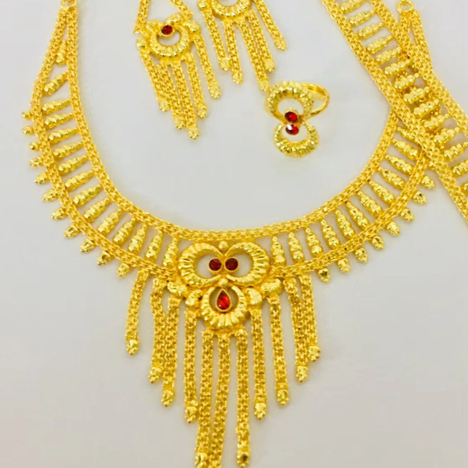 ชุดแฟชั่นทอง24K สไตล์ฝรั่งเศสจากสหรัฐอเมริกาประกอบด้วยสร้อยคอเข็มกลัดหวีเงินครบรอบปี