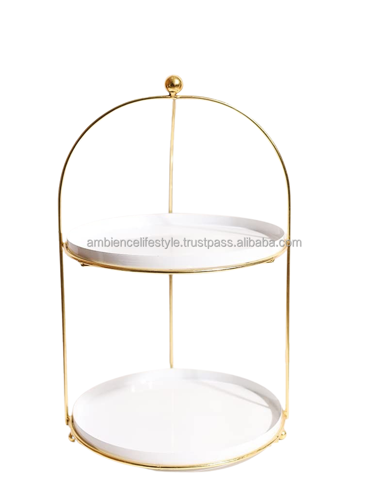 ที่ตั้งเค้กโลหะสีทอง3ชั้นสำหรับวางเค้กผงทองเคลือบสำหรับห้องครัวและขนมอบตามไลฟ์สไตล์ผู้ผลิตอินเดีย