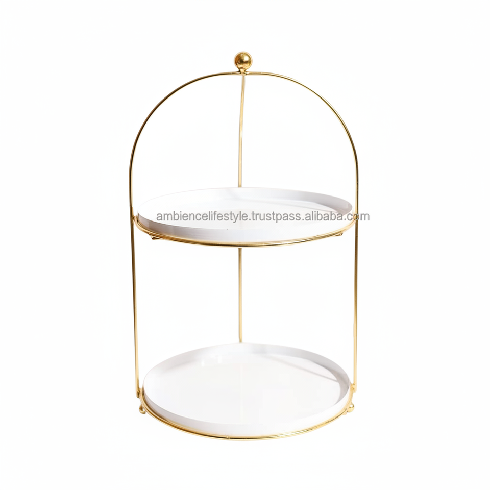 ชั้นวางเค้กแบบตั้งได้2ชั้นเคลือบด้วยผงสีขาวและสีทองสำหรับห้องครัวและขนมอบตามไลฟ์สไตล์ผู้ผลิตอินเดีย