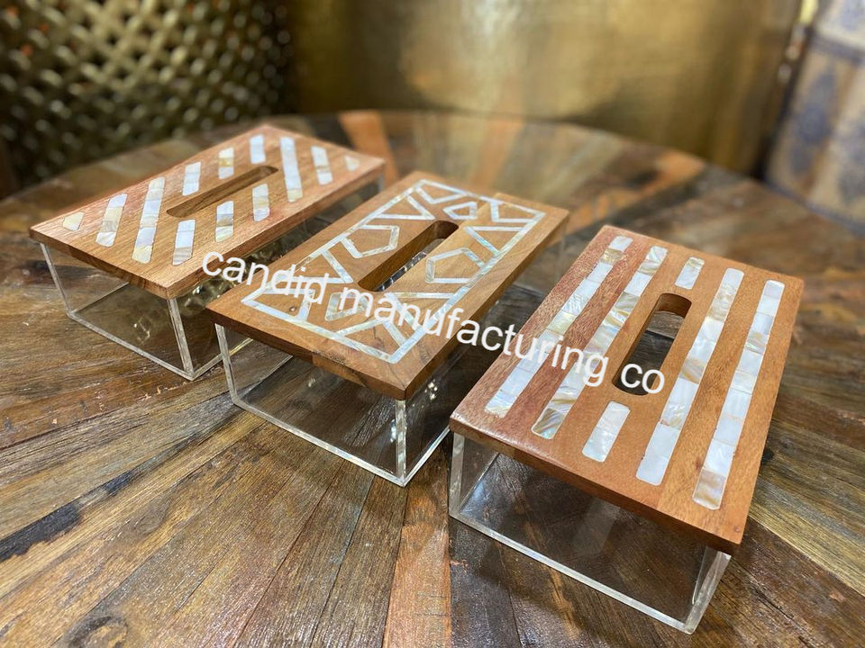 กล่องใส่กระดาษทิชชู่แบบฝังมุกกระดาษอะคริลิค MDF ดีไซน์ใหม่สไตล์รถยนต์ร้านอาหารโรงแรมจากผู้ผลิตอินเดีย