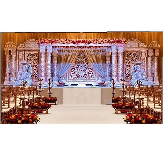การแต่งงานที่ยิ่งใหญ่ของชาวอินเดียทำจากใยผ้าแมนเด็ปสีเงินดีไซน์แบบโบราณสำหรับงานแต่งงาน