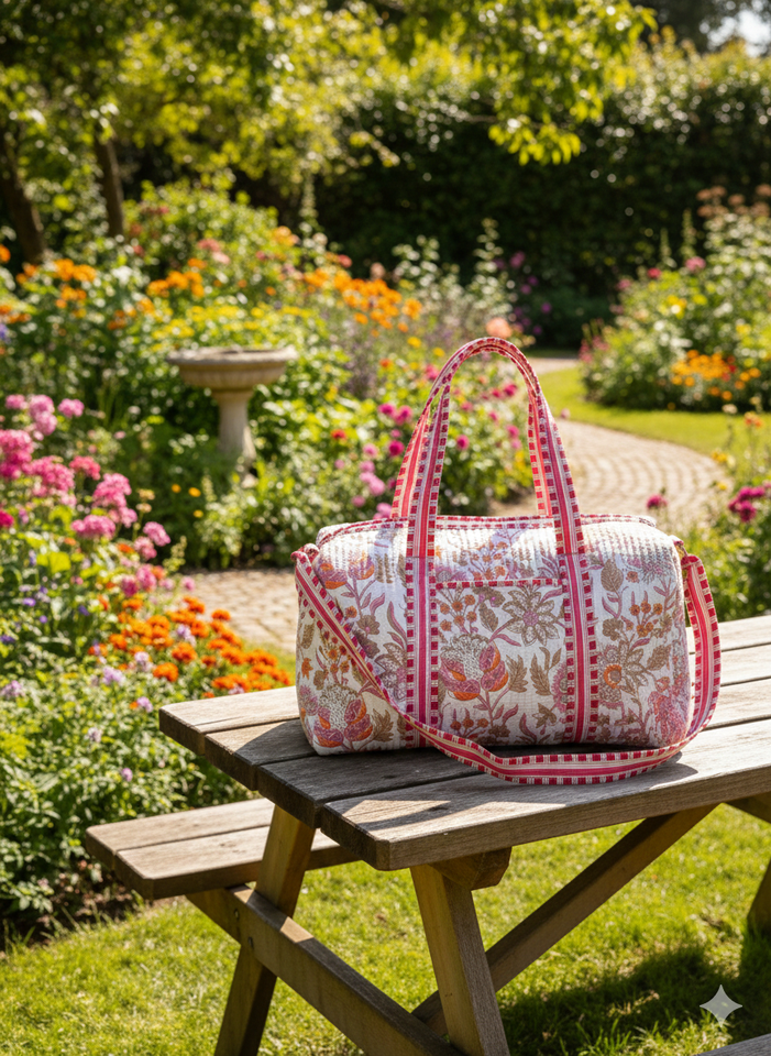 กระเป๋าผ้าฝ้ายพิมพ์ลายบล็อกหลากสีสไตล์อินเดีย ปิดด้วยซิป เป็นมิตรกับสิ่งแวดล้อม ทนทาน น้ำหนักเบา หรูหรา ขนาดใหญ่