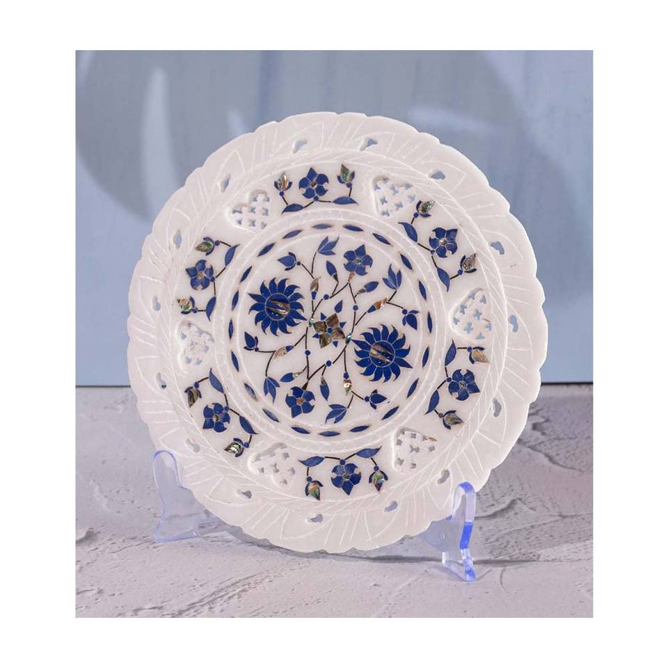 Product Name:Indian Blue Lapis Lazuli Stone And Mother Of Pearl Inlay Design Plate