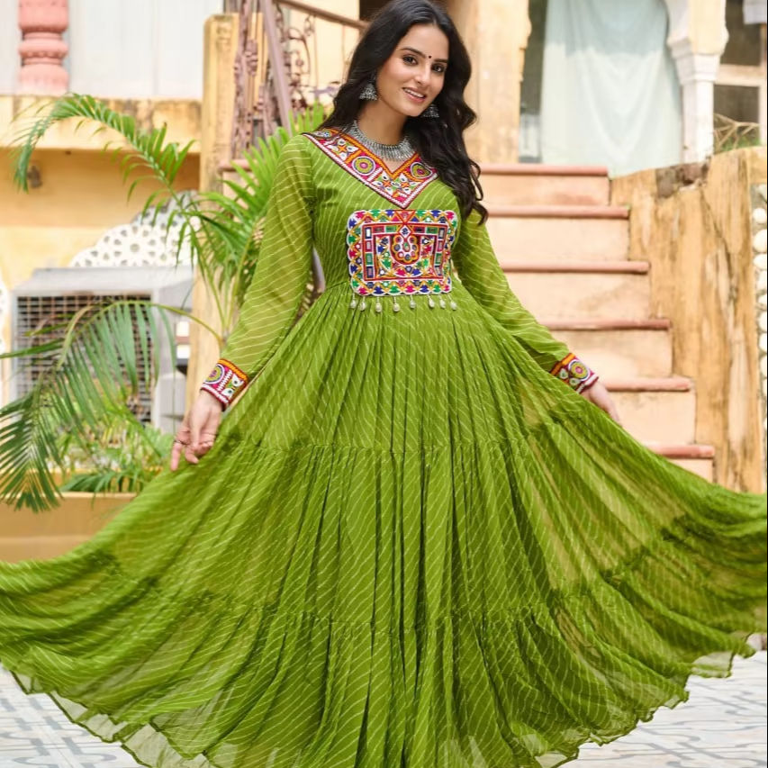 เสื้อคลุมทำงาน:งานพิมพ์ laheriya กับงานแพทช์ kutchi
