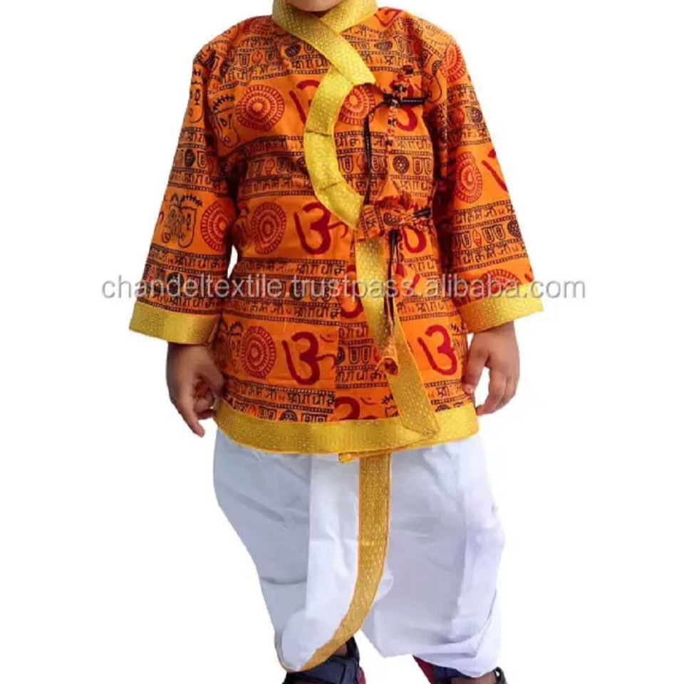 ชุดเด็กผู้ชายแบบดั้งเดิมของอินเดีย ลายพิมพ์ออม ผ้าซาฟฟรอน ดอติ คุर्ตา ชุดดอติ ชุดเด็กทารก ชุดพื้นเมือง คุर्ตา ลายพิมพ์ออม