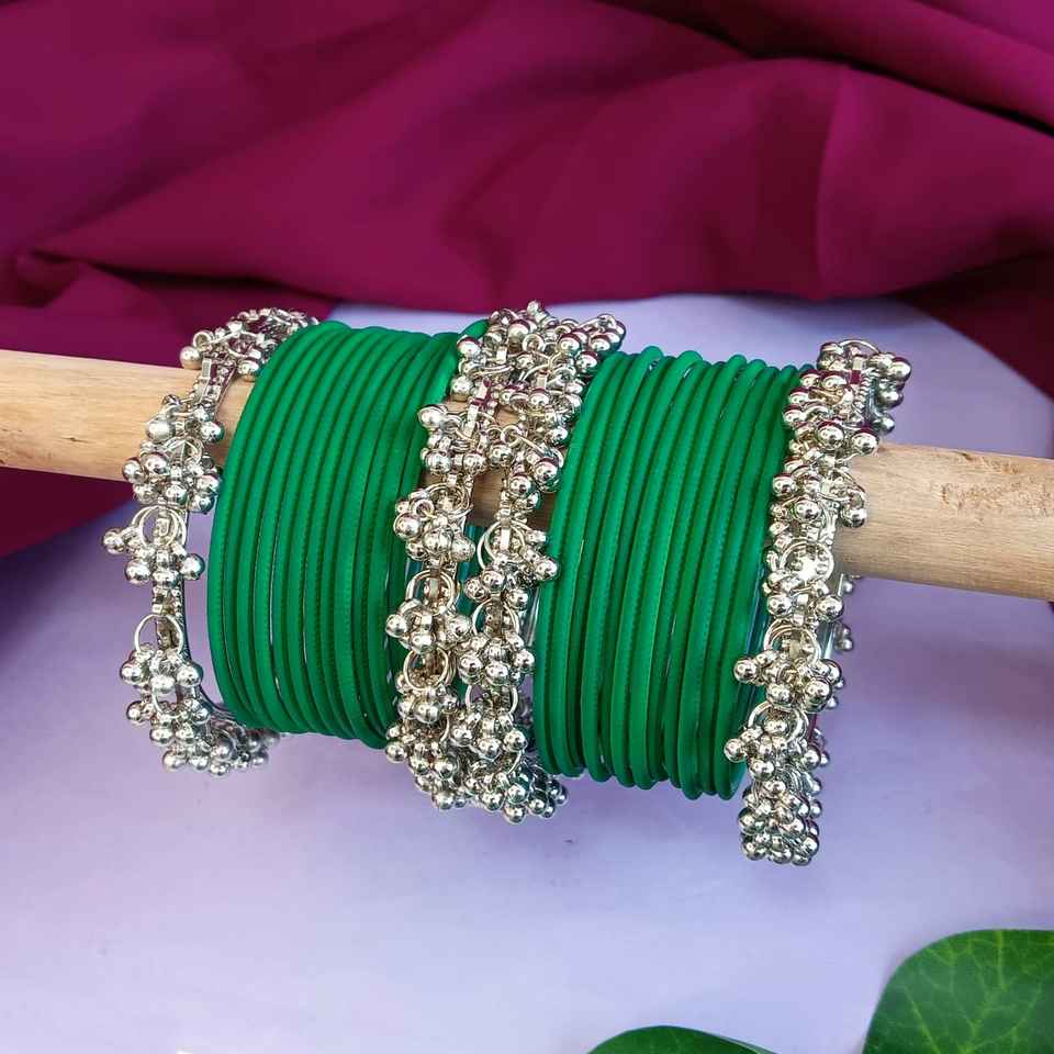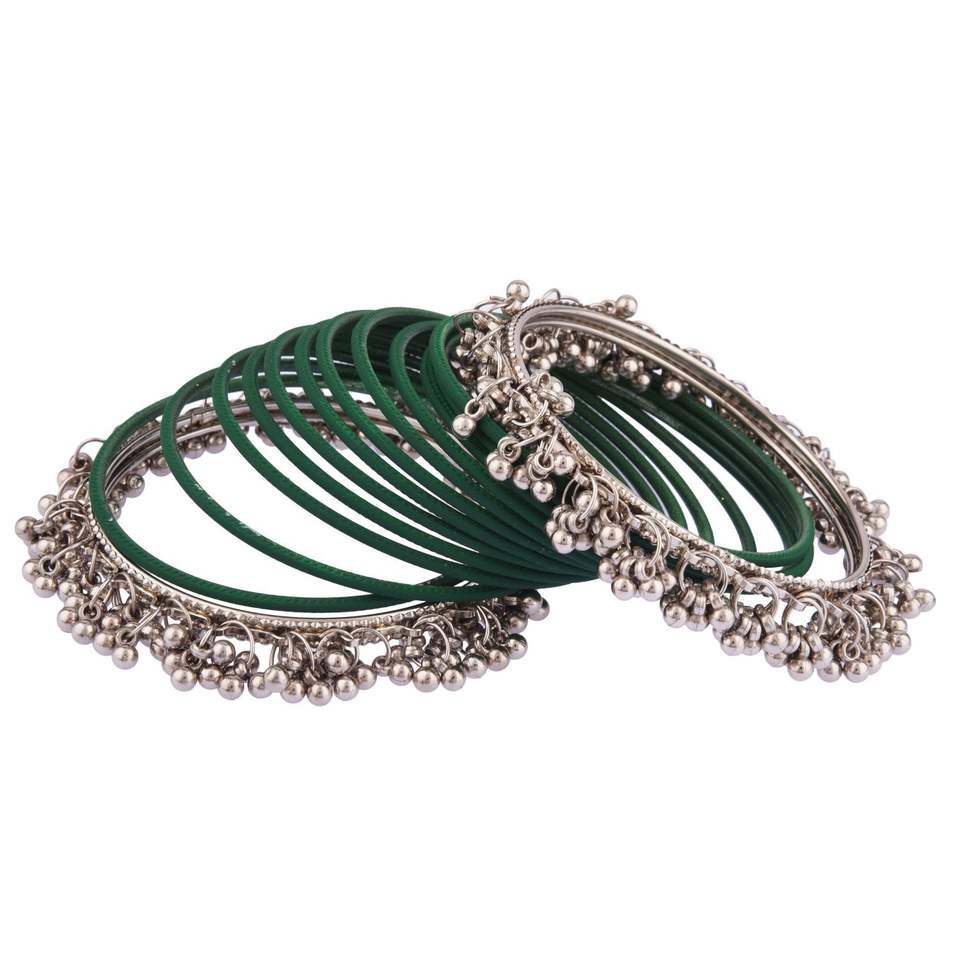 Embellished with matte metal bangles, and bell charm ghungroo oxidized