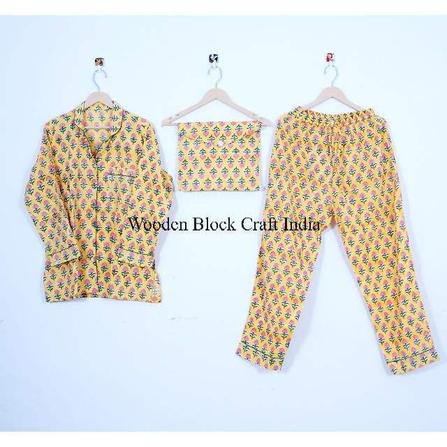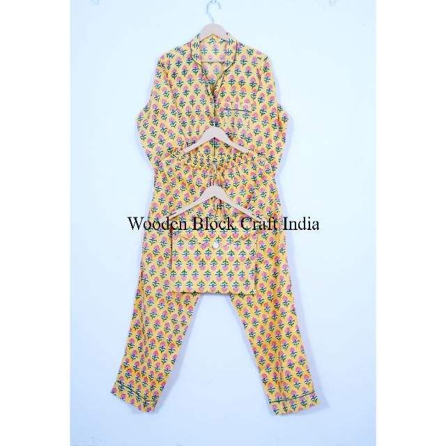 ชุดนอนอินเดียผ้าฝ้ายพิมพ์ลายบล็อก 100% ชุดเพื่อนเจ้าสาวผ้าฝ้ายพิมพ์ลายดอกไม้และเสื้อเชิ้ต ชุดนอนผ้าฝ้ายแท้ 100% ทำมือในอินเดีย