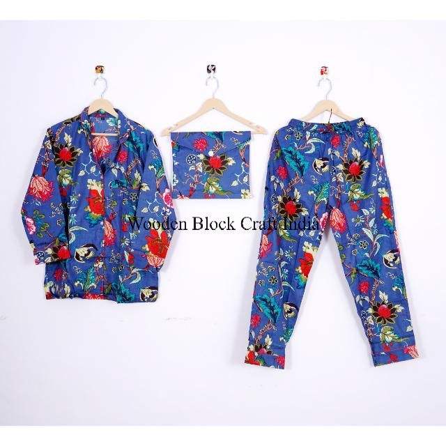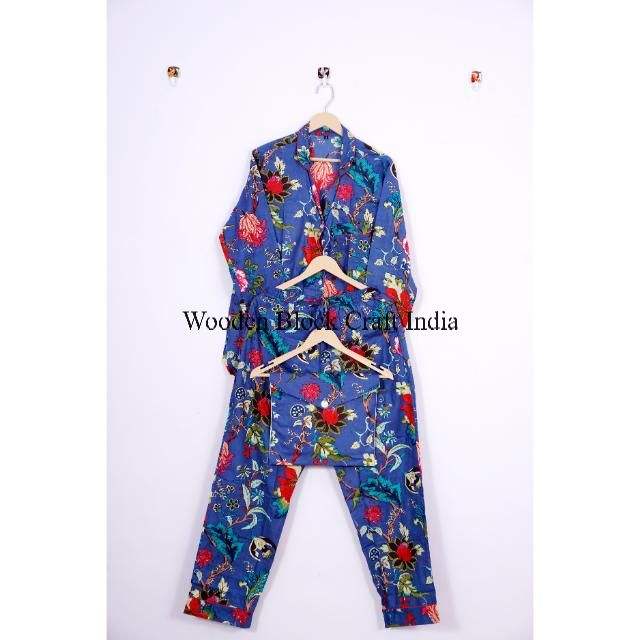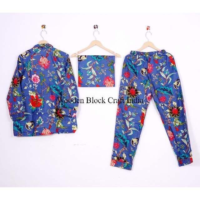 ชุดนอนอินเดียผ้าฝ้ายพิมพ์ลายบล็อก 100% ชุดนอนและเสื้อเชิ้ตสำหรับเพื่อนเจ้าสาว ลายดอกไม้ งานแฮนด์เมดอินเดีย ชุดนอนผ้าฝ้ายแท้ 100%