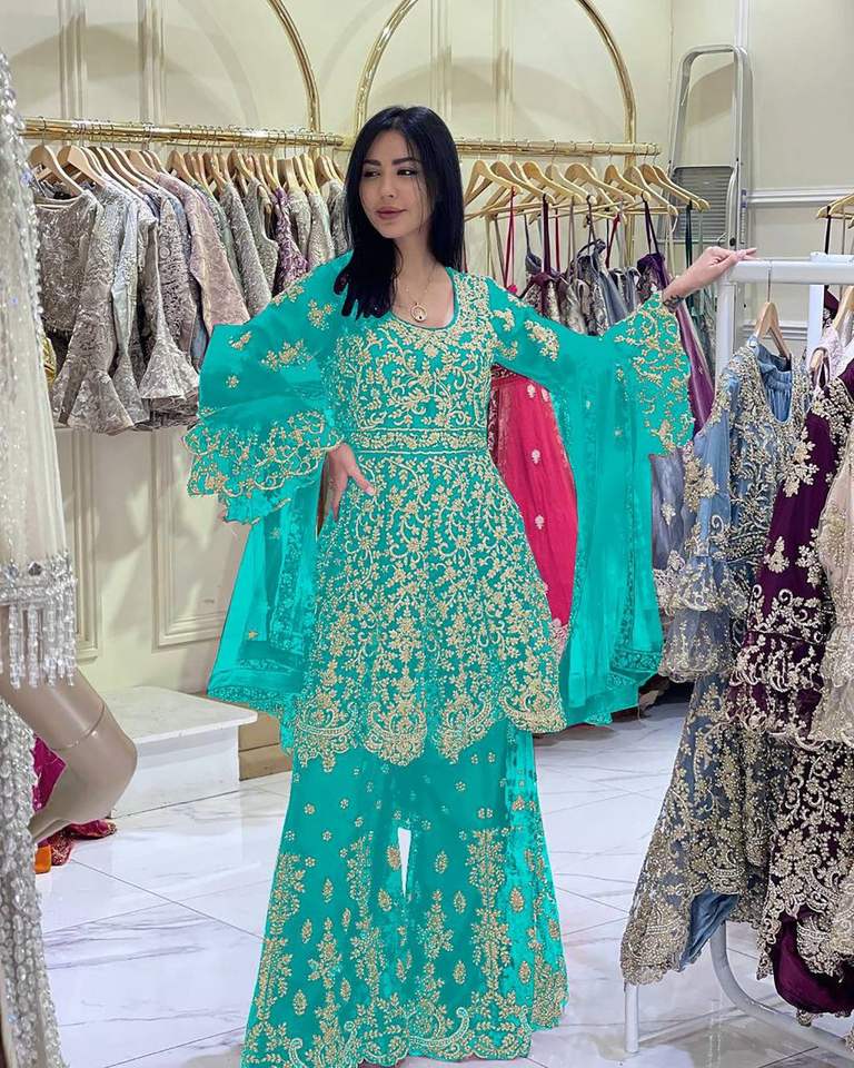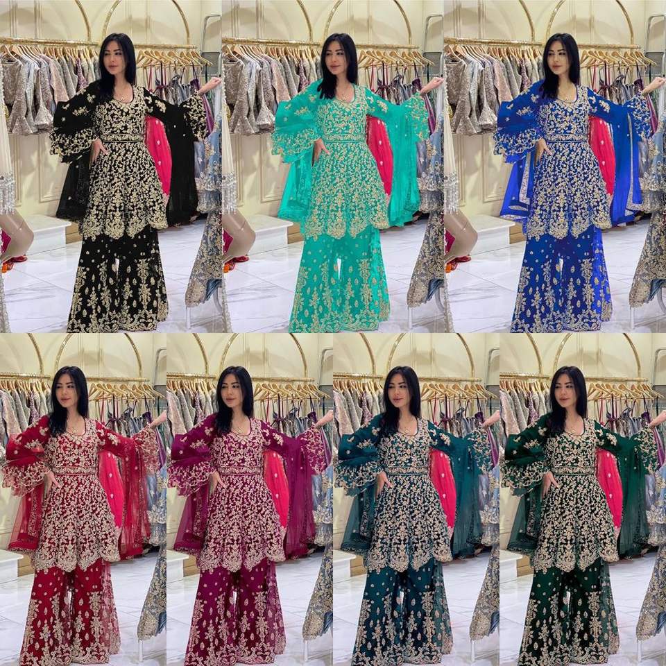 ชื่อสินค้า:ชุดออกงาน เสื้อ, กางเกง Sharara Palazzo และผ้าคลุมไหล่