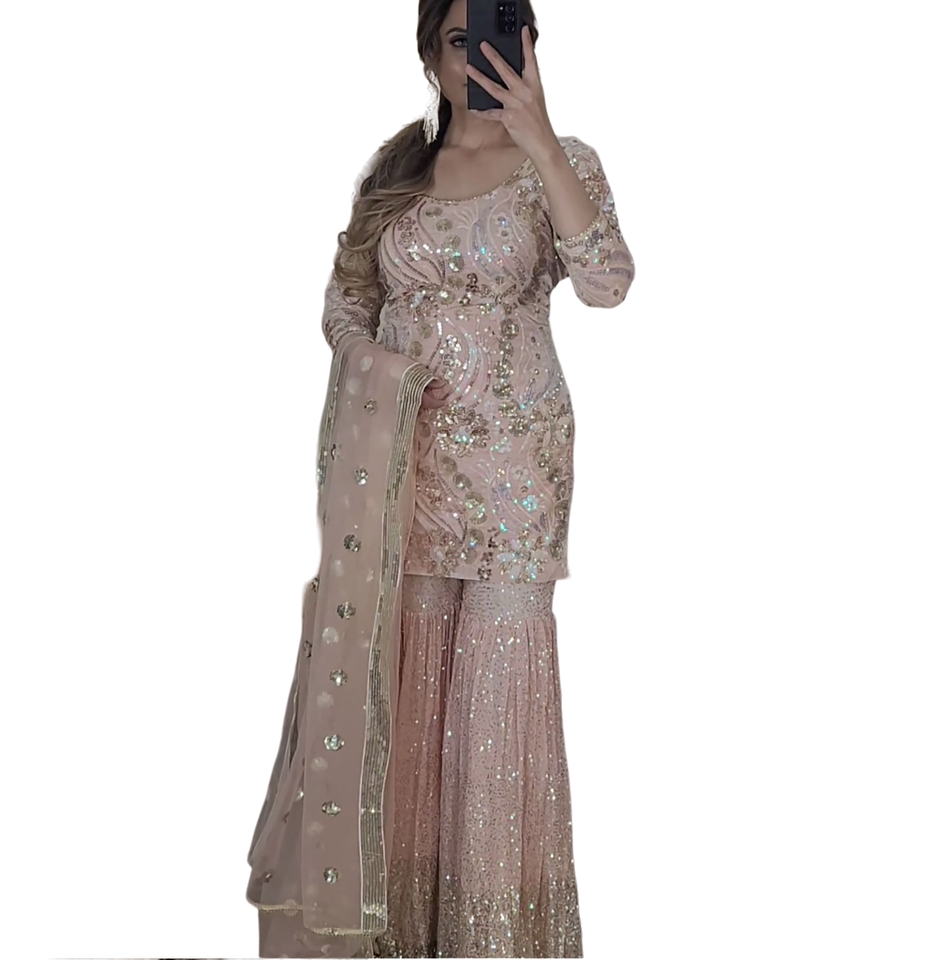 คุณสมบัติ:ชุด kurta sharara และ dupatta แบบตรง