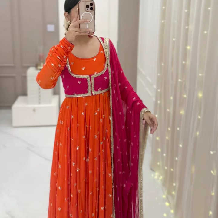 ชุดอนาร์กาลีผ้าจอร์เจตต์งานปักเลื่อมสวยงามสไตล์อินเดีย-ปากีสถาน สำหรับงานปาร์ตี้ งานแต่งงาน ชุดพื้นเมืองสำหรับผู้หญิง