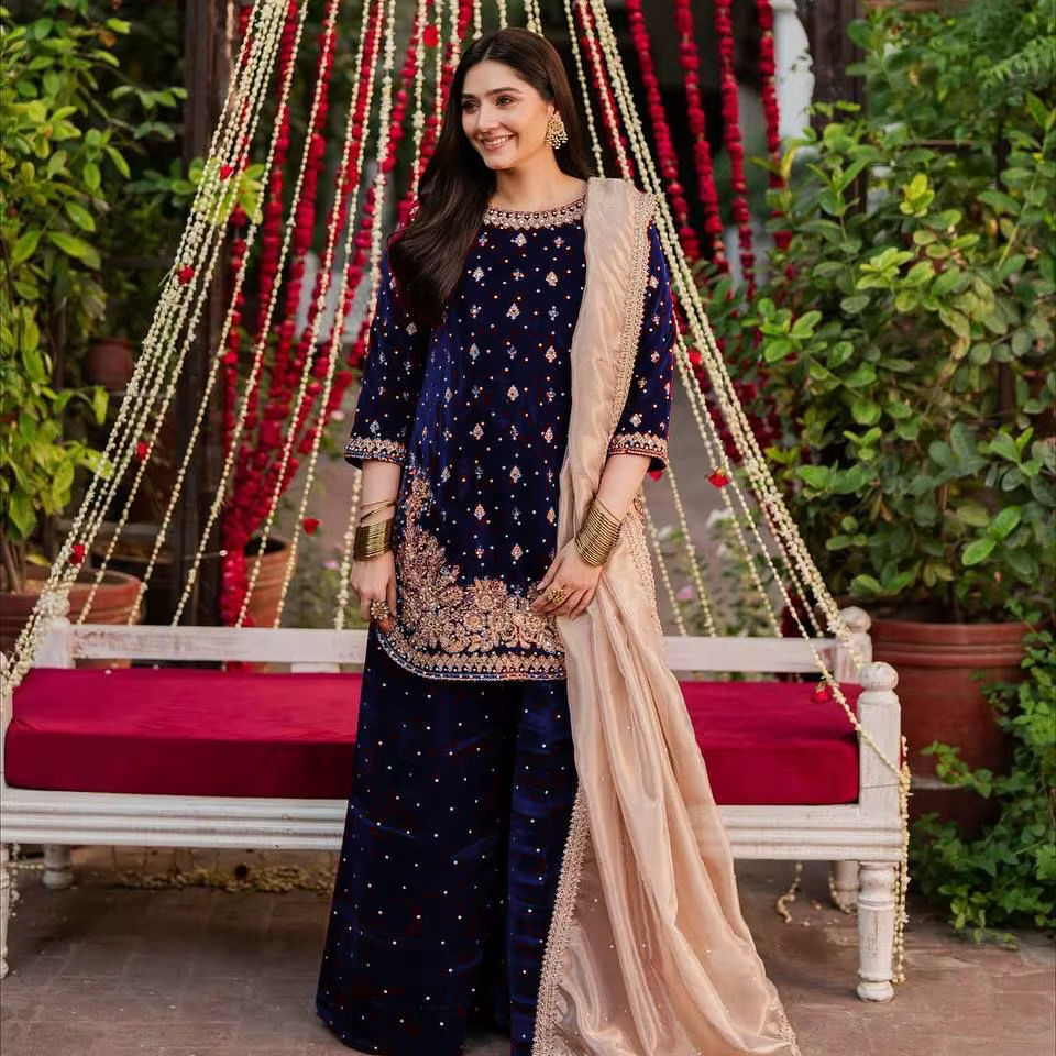 ชุดชาราร่าดีไซน์สวยงามสไตล์อินเดีย-ปากีสถาน ผ้ากำมะหยี่ สำหรับงานปาร์ตี้หรูหรา งานแต่งงาน ชุดชาราร่าแบบดั้งเดิมและแบบลำลอง