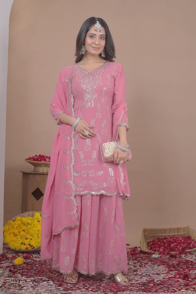 ชุดชาราร่าดีไซน์สวยงามสไตล์อินเดีย-ปากีสถาน ผ้าชินนอน สำหรับงานปาร์ตี้หรูหรา งานแต่งงาน ชุดชาราร่าแบบดั้งเดิมและแบบลำลอง