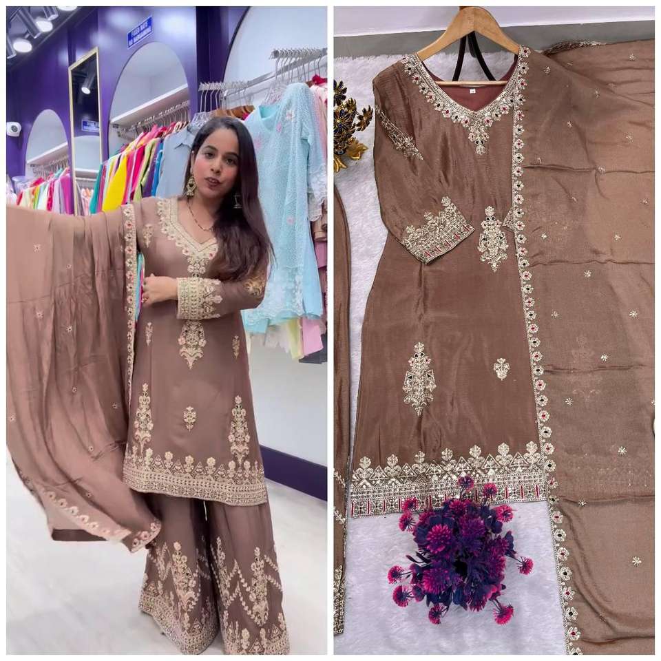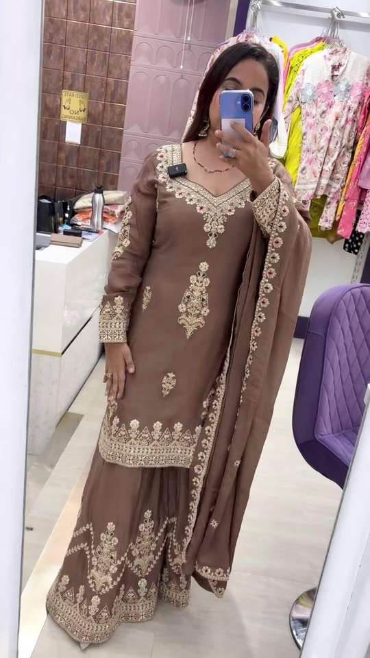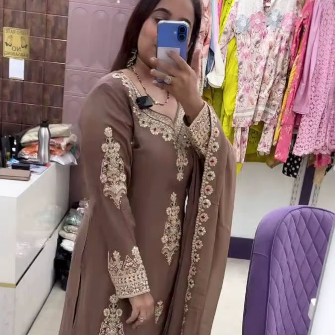 ชุดชาราร่าผ้าไหมชิโนนสวยงามสไตล์อินเดีย-ปากีสถาน ชุดชาราร่าแบบหนักสไตล์ชาติพันธุ์ ชุดสำหรับงานปาร์ตี้ งานแต่งงาน และสวมใส่ลำลองสำหรับผู้หญิง