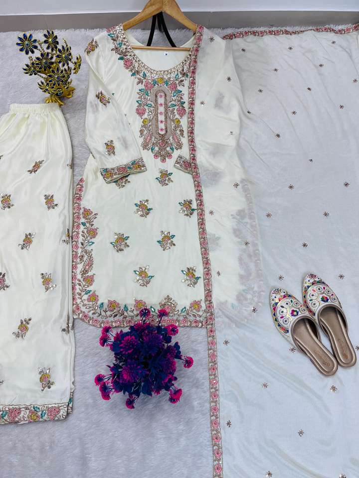 ชุดชาราร่าผ้าไหมชิโน่สวยงามบริสุทธิ์สไตล์อินเดียปากีสถาน ชุดชาราร่าแบบหนาสำหรับงานปาร์ตี้ งานแต่งงาน และสวมใส่ลำลองสำหรับผู้หญิง