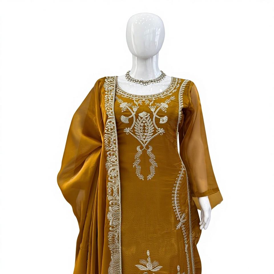 ชุดชาราร่าผ้าไหมชิโน่สวยหรูสไตล์อินเดีย-ปากีสถาน ชุดชาราร่าแบบหนาสำหรับงานแต่งงานฮัลดี ชุดลำลองสำหรับผู้หญิง