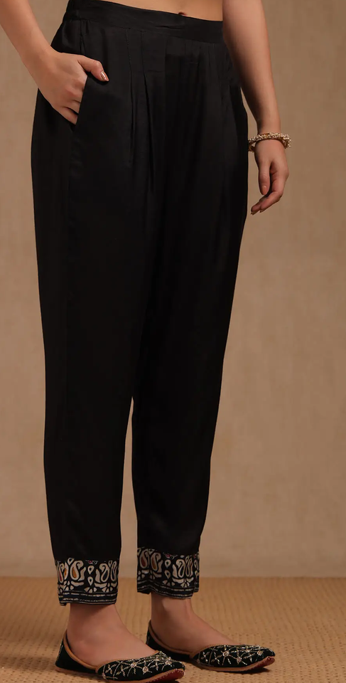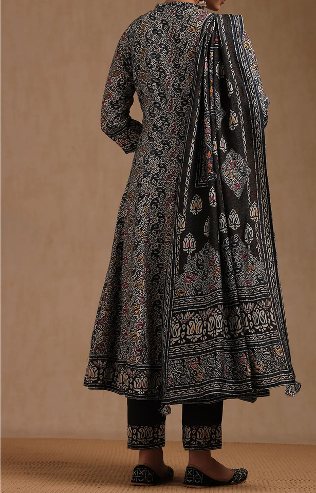 ชุดอินเดียและปากีสถานชุดเดรสผ้าไหมลาย Paisley สีดำหลากสีพิมพ์ลายพิมพ์ลายผ้าวิสคอสสำหรับผู้หญิง