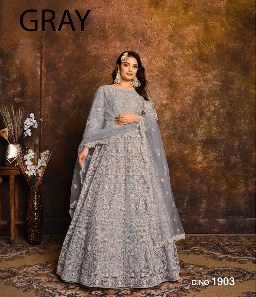 ชุดอานารกาลีสำหรับผู้หญิงอินเดียและปากีสถาน แต่งลายปักผีเสื้อ งานกระจก ลูกไม้ ผ้าจอร์เจียต์เทียมเนื้อหนา ความยาวปานกลาง เหมาะสำหรับงานปาร์ตี้