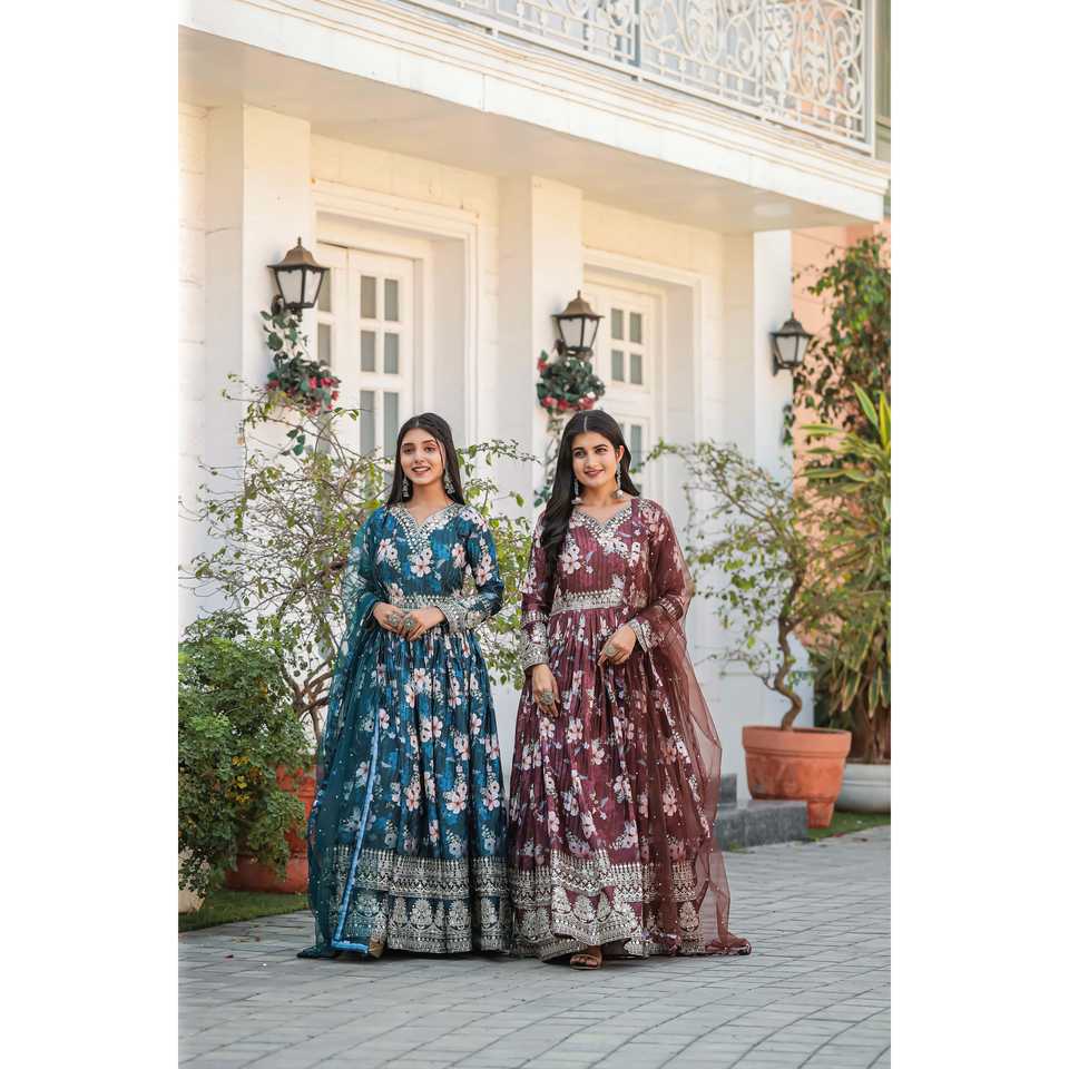 ชุดเดรสงานเลี้ยงหรูหราสไตล์อินเดียและปากีสถาน พร้อมกางเกงและผ้าคลุมไหล่
