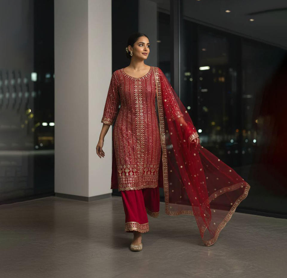ชุดเดรสประจำชาติอินเดียและปากีสถานผ้าจอร์เจียเทียมแบบชาวปากีสถานสำหรับผู้ใหญ่