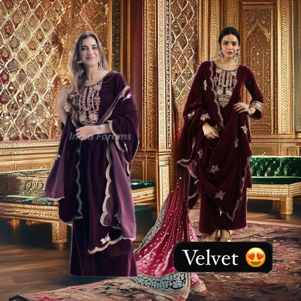 Indian Pakistani Designer Velvet Salwar Suit With Sequence And Embroidery Work Fancy Party Wedding Casual Wear Salwar suit
