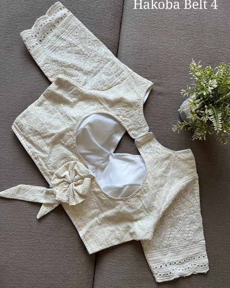 เสื้อเบลาส์ผ้าฝ้ายสีขาวสำหรับผู้หญิงชุดปาร์ตี้แฟนซีของเจ้าสาวเสื้อเบลาส์สไตล์อินเดีย