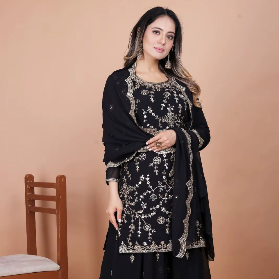 ชุดชาราราผ้าจอร์เจตต์สไตล์อินเดีย-ปากีสถาน ผสมผสานความดั้งเดิมกับความทันสมัย เสื้อผ้าผู้หญิงและเด็กผู้หญิงยอดนิยม ขายดี