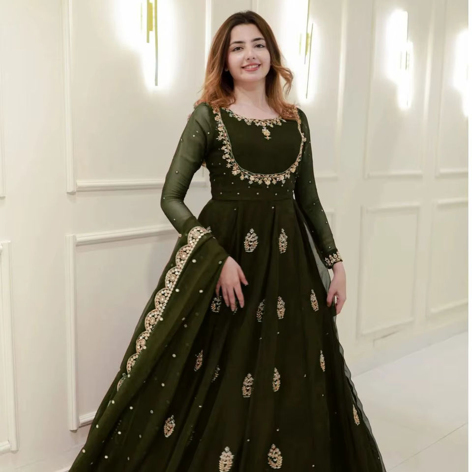 ชุดเดรสอินเดีย-ปากีสถาน ผ้าจอร์เจตแท้ สวยหรู สำหรับงานพิธีการ งานเลี้ยง งานแต่งงาน สไตล์บอลลีวูด แบบดั้งเดิม
