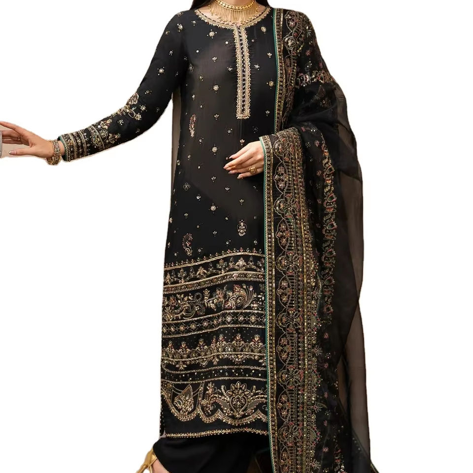ชุดเดรสสตรีอินเดีย-ปากีสถาน ปี 2025 ล่าสุด ชุดสلوار คามีซ ดีไซน์ทันสมัย พร้อมลายพิมพ์ฟอยล์ ชุดเดรสผ้าลอนดีไซน์ปากีสถานสำหรับผู้หญิง