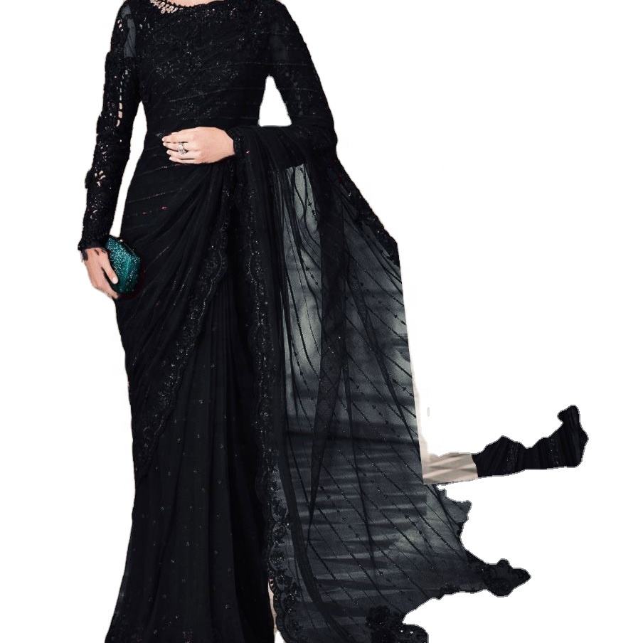 ชุดสาหรี่กะมีซผ้าชีฟองปักลายสไตล์อินเดีย-ปากีสถาน งานปักมือประณีต ดีไซน์ทันสมัย เหมาะสำหรับงานปาร์ตี้ ขายดีประจำปี 2023