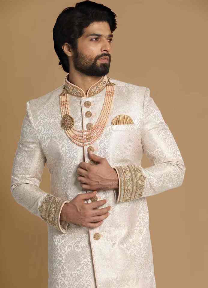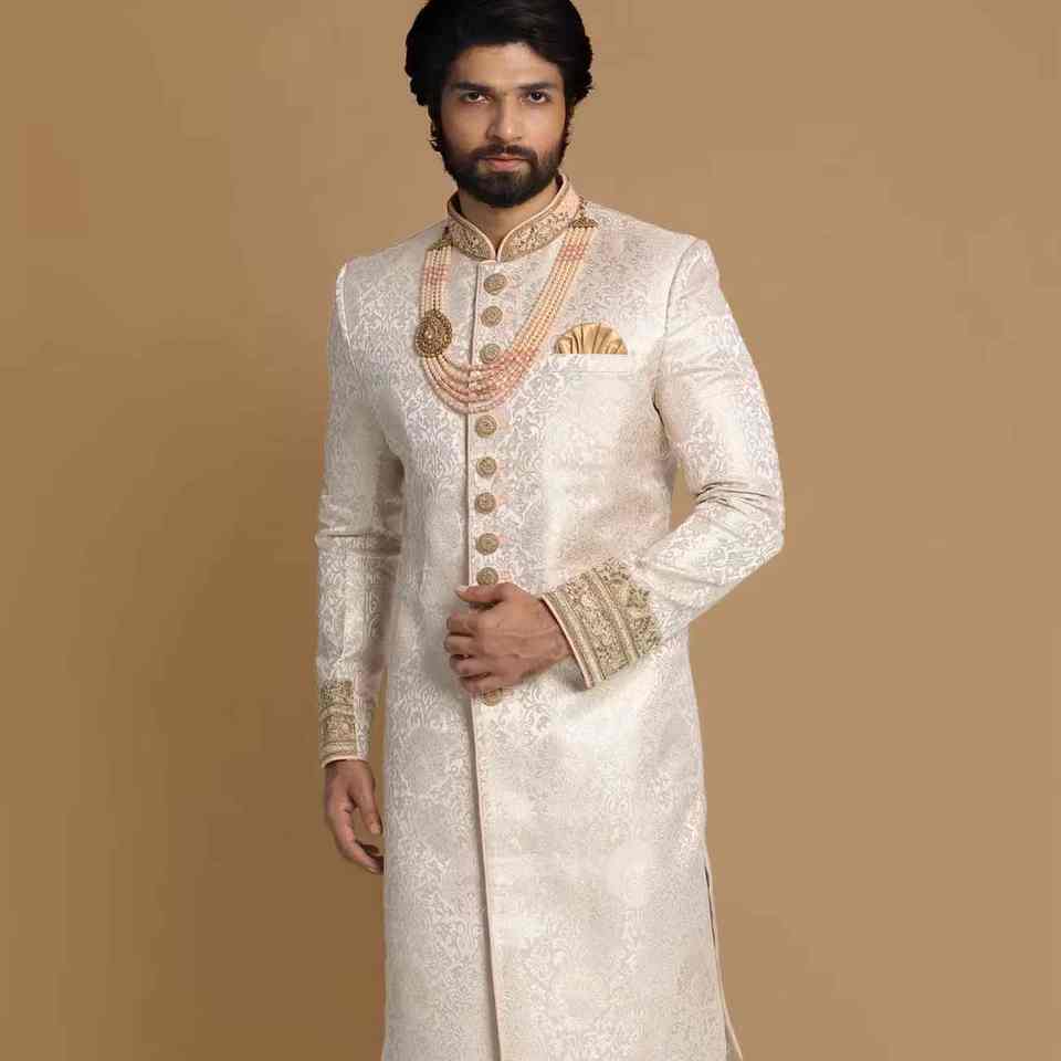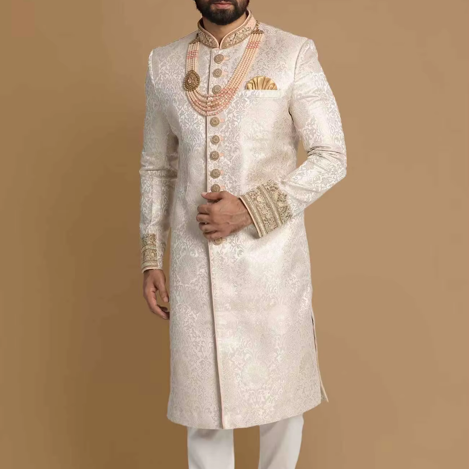 ชุดเชอร์วานีงานแต่งงานสำหรับผู้ชายอินเดียและปากีสถานแบบสั่งตัดพิเศษ ชุดเจ้าบ่าวหรูหราปักลาย ซัลวาร์ คามีซ สวมใส่สบาย ไม่ยับ ป้องกันแสงแดด เหมาะสำหรับงานปาร์ตี้ทุกประเภท
