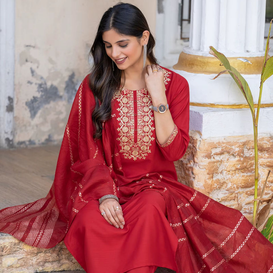 ชุดสาหรี่กะมีซสไตล์บอลลีวูดสำหรับผู้หญิงอินเดียและปากีสถาน สีแดง สำหรับฤดูหนาวและฤดูร้อน ทำจากผ้าฝ้าย เหมาะสำหรับงานปาร์ตี้ คอลเลคชั่นขายส่ง