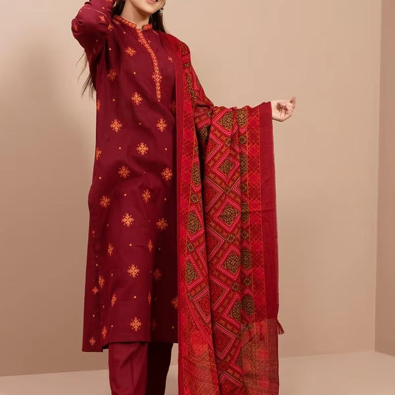 ชุดสูทลำลองสไตล์ปากีสถานสำหรับผู้หญิงผ้าลินินสำหรับหน้าหนาวชุดปาร์ตี้ดูพต้าน้ำหนักเบาสวมใส่สบายและมีสไตล์