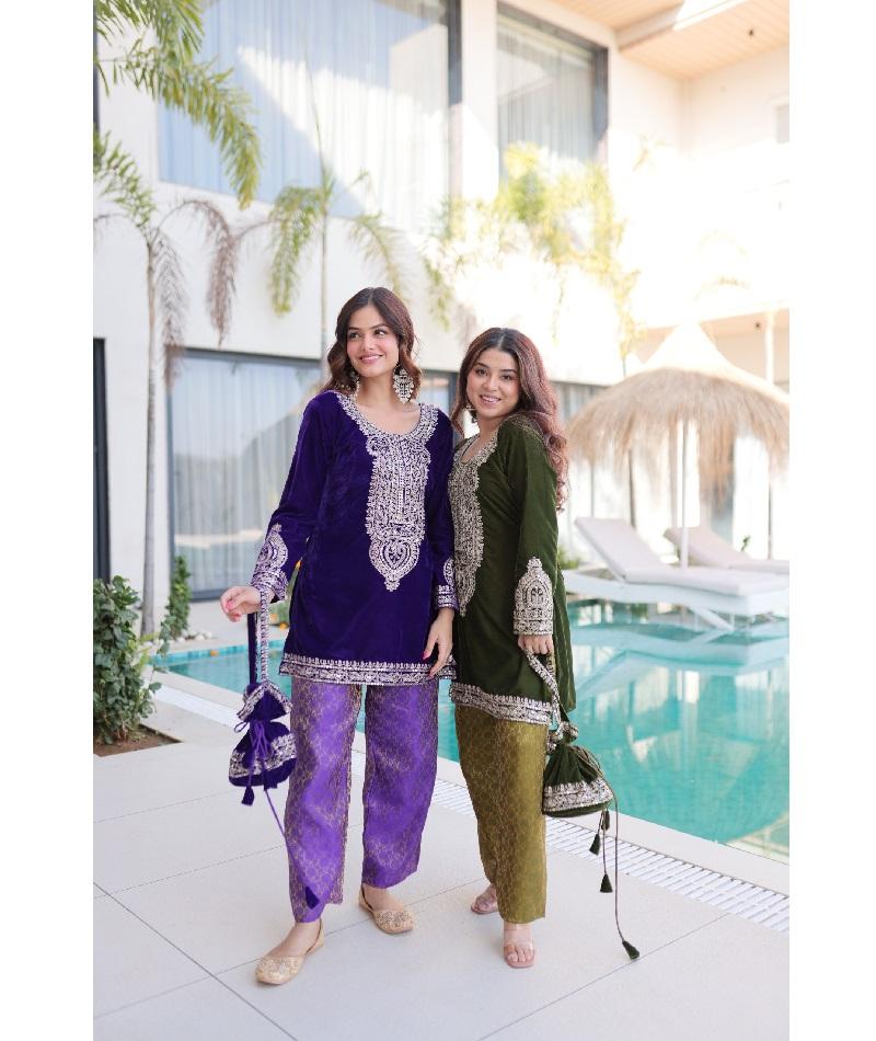 ชุดสلوار คามีซ ผ้ากำมะหยี่สไตล์อินเดีย-ปากีสถาน ปักลายด้วยด้ายซารีอย่างดี สำหรับผู้หญิง ใส่ในงานแต่งงานหรือเทศกาลต่างๆ