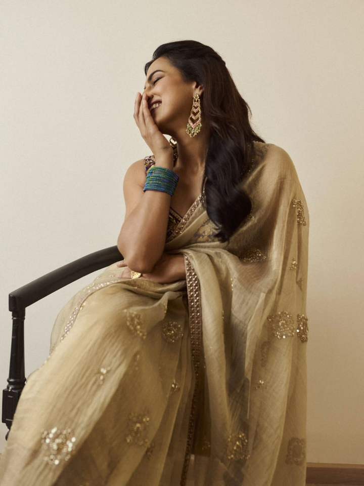 ผ้าซิลค์อินเดีย-ปากีสถานแบบดั้งเดิมสำหรับฤดูร้อน สวยงาม บริสุทธิ์ นุ่ม เบาสบาย พร้อมงานปักเลื่อมหนักๆ ชุดส่าหรีพร้อมเสื้อคลุมสไตล์ชาติพันธุ์ เหมาะสำหรับงานปาร์ตี้