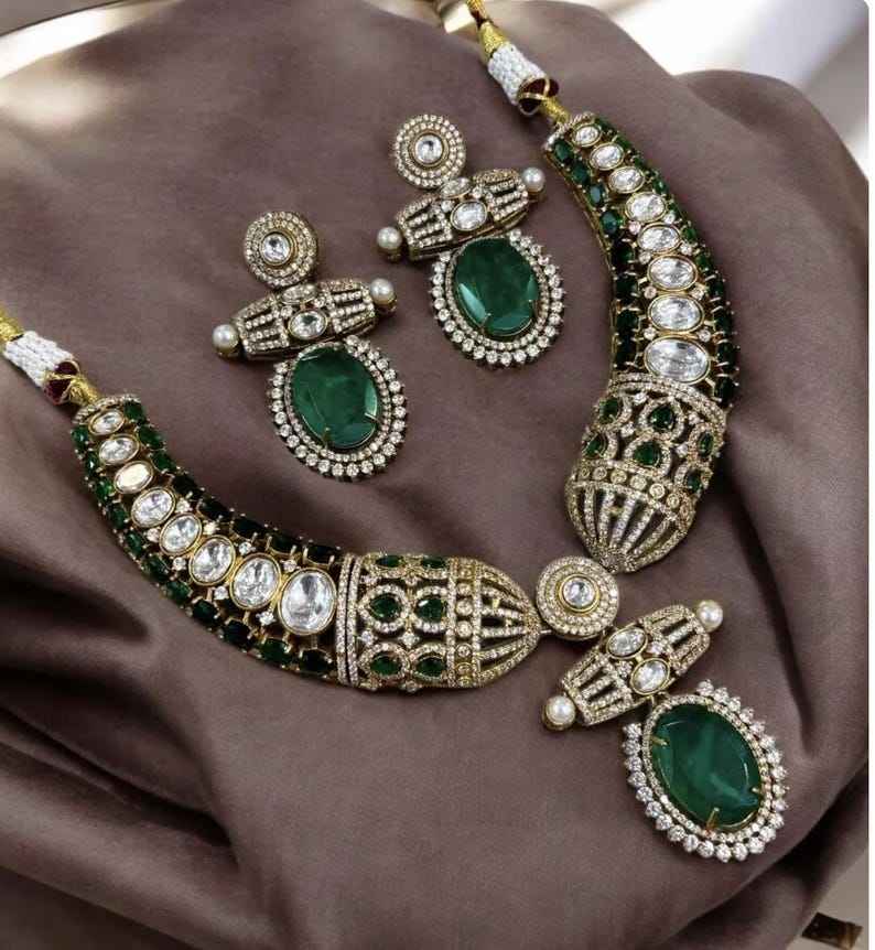 คำหลัก:สร้อยคอโพลกีอินเดีย ประดับมรกต ชุดอินเดียแบบดั้งเดิม