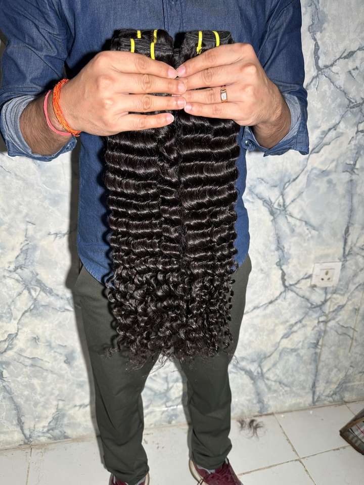 ผมต่อของมนุษย์ดิบคุณภาพระดับพรีเมี่ยมแบบอินเดียผมลอนคลื่นลึกเรียงตามเส้นผมที่ไม่ได้ผ่านกระบวนการโดยตรงจากผู้ผลิต