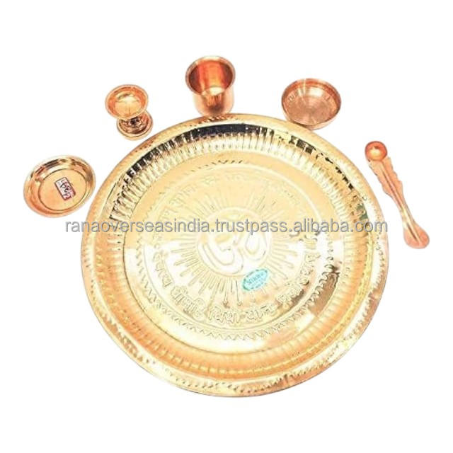ชุดถาดบูชาอินเดีย - ทองแดงแท้ขัดเงา สำหรับพิธีทางศาสนาและตกแต่งบ้าน ตกแต่งมณฑลบูชา นำโชคดี