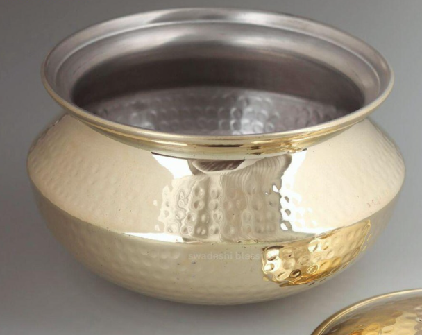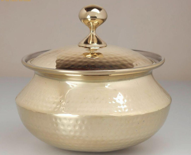 หม้อและกระทะทำอาหารทองเหลืองและทองแดงแท้จากอินเดีย สำหรับเสิร์ฟและปรุงอาหารในบ้าน