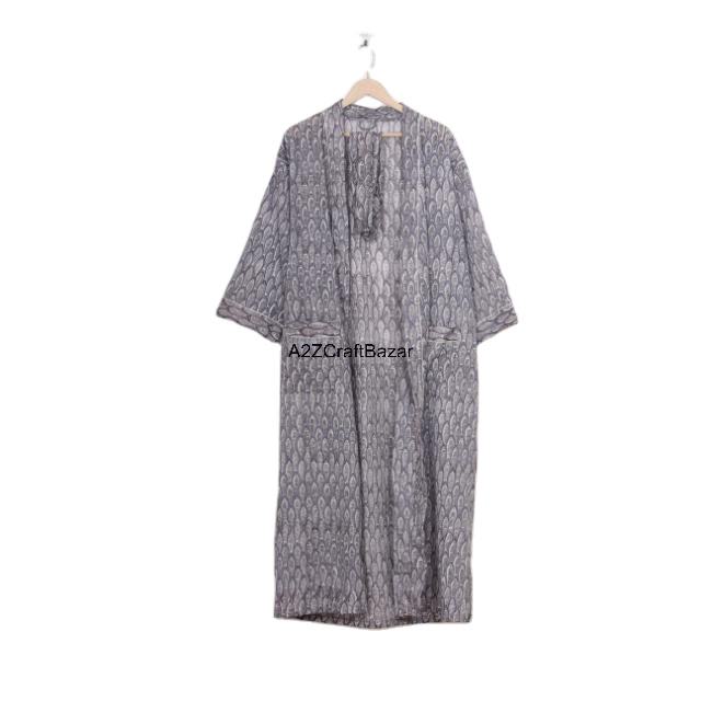 ชุดแม็กซี่เดรสยาวทำจากผ้าฝ้ายแท้สไตล์อินเดียสำหรับใส่ตอนกลางคืนและเลานจ์พร้อมกระเป๋าลายดอกไม้สองกระเป๋าสำหรับใส่โลโก้หน้าสำหรับฤดูหนาวฤดูร้อน