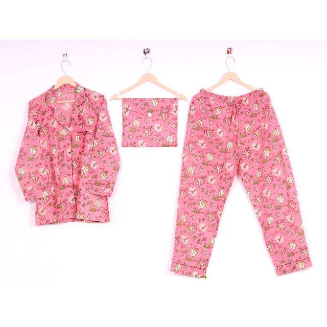 ชุดชุดนอนลายดอกไม้ผ้าคอตตอนแท้พิมพ์ลายดอกไม้มีกระดุมปิดสำหรับใส่ในฤดูร้อนฤดูใบไม้ผลิ