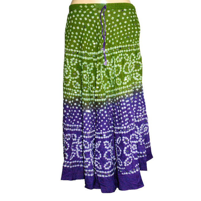 กระโปรงผ้าฝ้ายอินเดีย:กระโปรงมัดย้อม bandhej