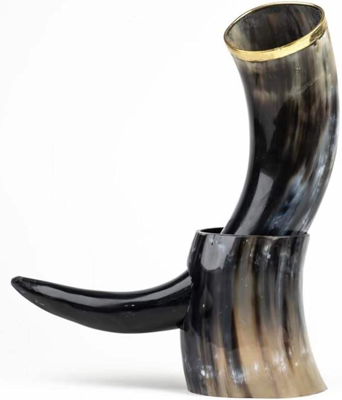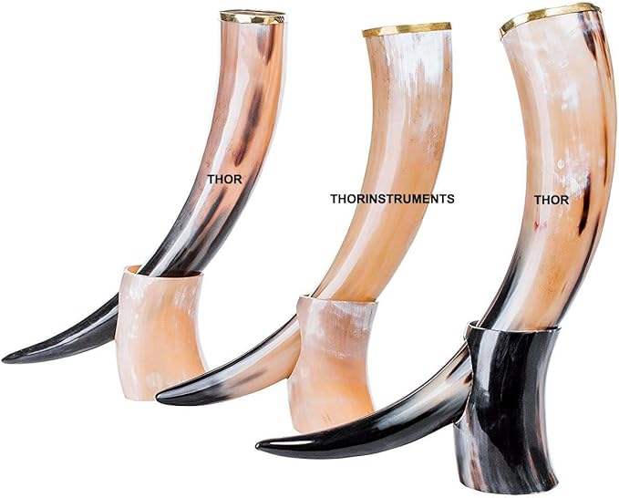 ฮอร์นดื่มไวกิ้งธรรมชาติพร้อมขาตั้งเหล็กแกะสลักฮอร์นดื่มไวกิ้งโบราณงานฝีมือจากฮันแนน