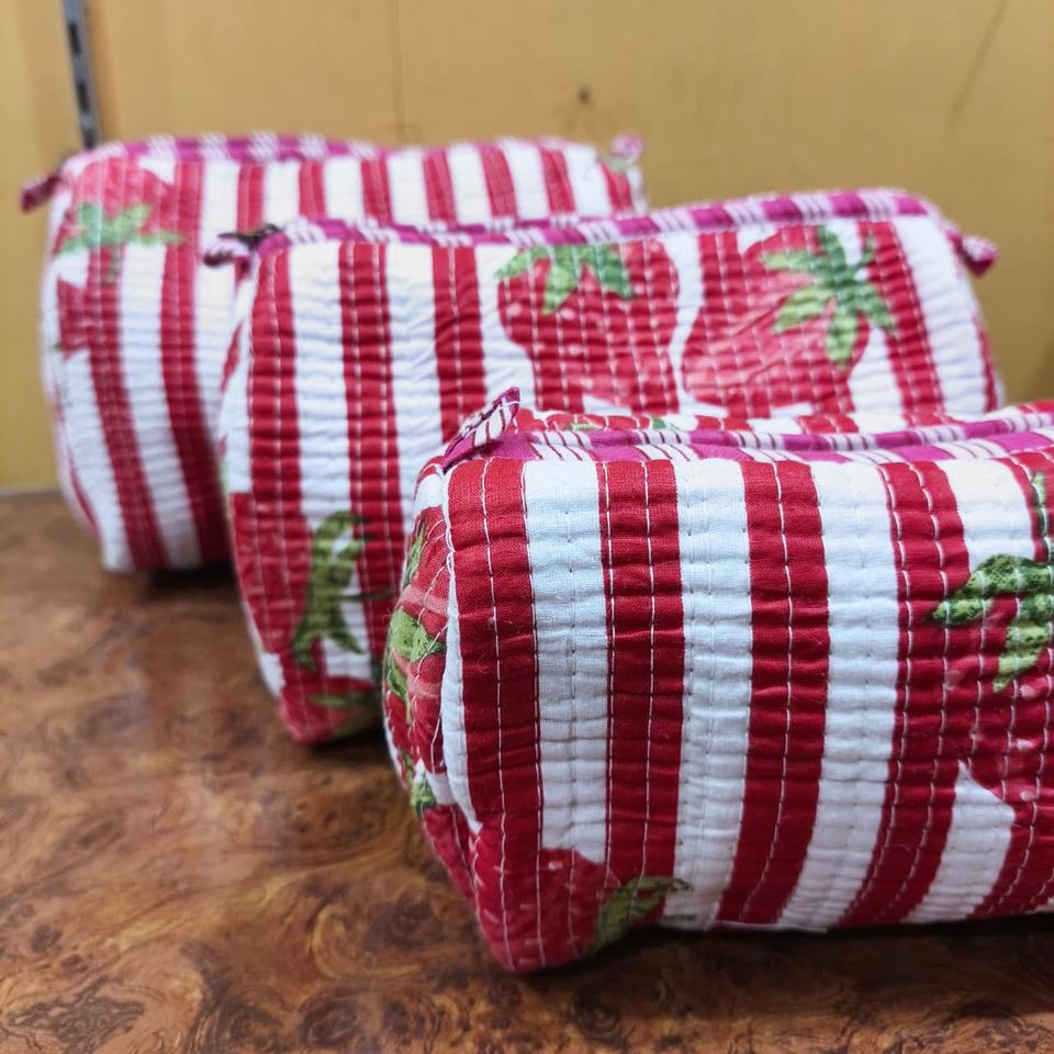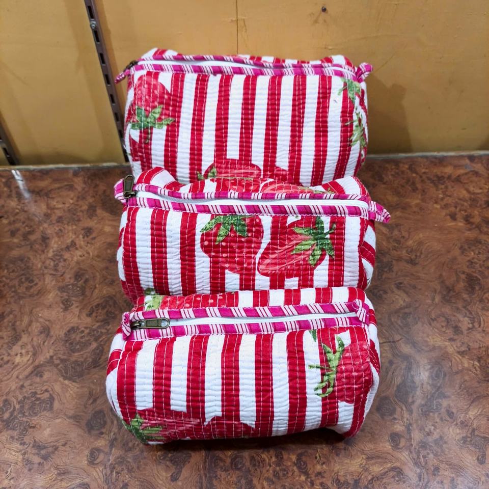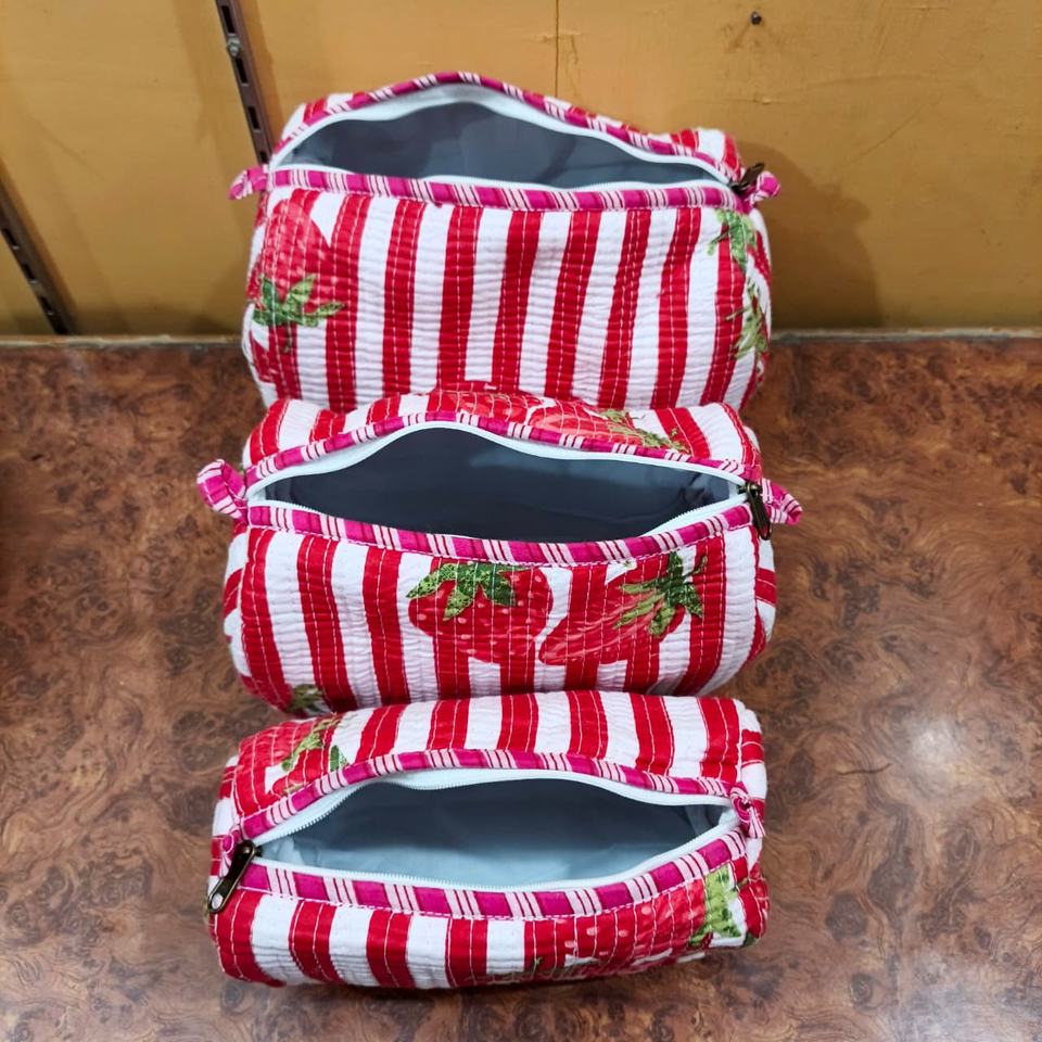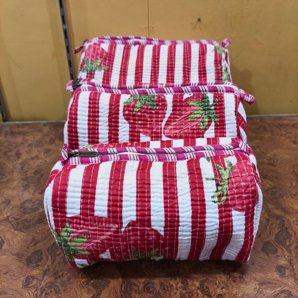 Indian Quilted Cotton Eco-Friendly Fruit Pattern Zipper Closure Reusable Three Piece Set Large Portable Makeup Case Pouch Spring