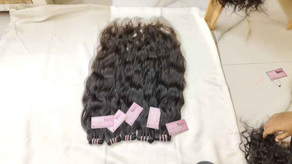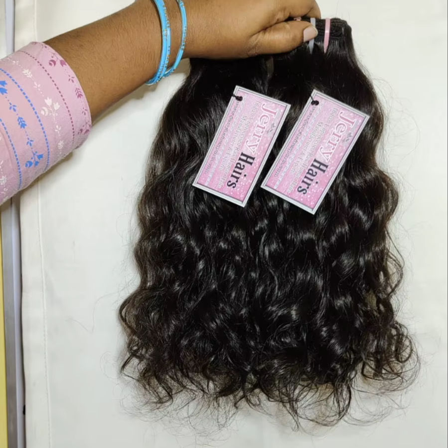 ผมแท้จากอินเดียแบบเป็นมัด สีดำธรรมชาติ ทรงบอดี้เวฟ ไม่ผ่านการแปรรูป จัดเรียงเกล็ดผมอย่างดี เย็บด้วยเครื่องจักรแบบดับเบิ้ลเวฟท์ น้ำหนัก 100 กรัม แบบเส้นเดี่ยว