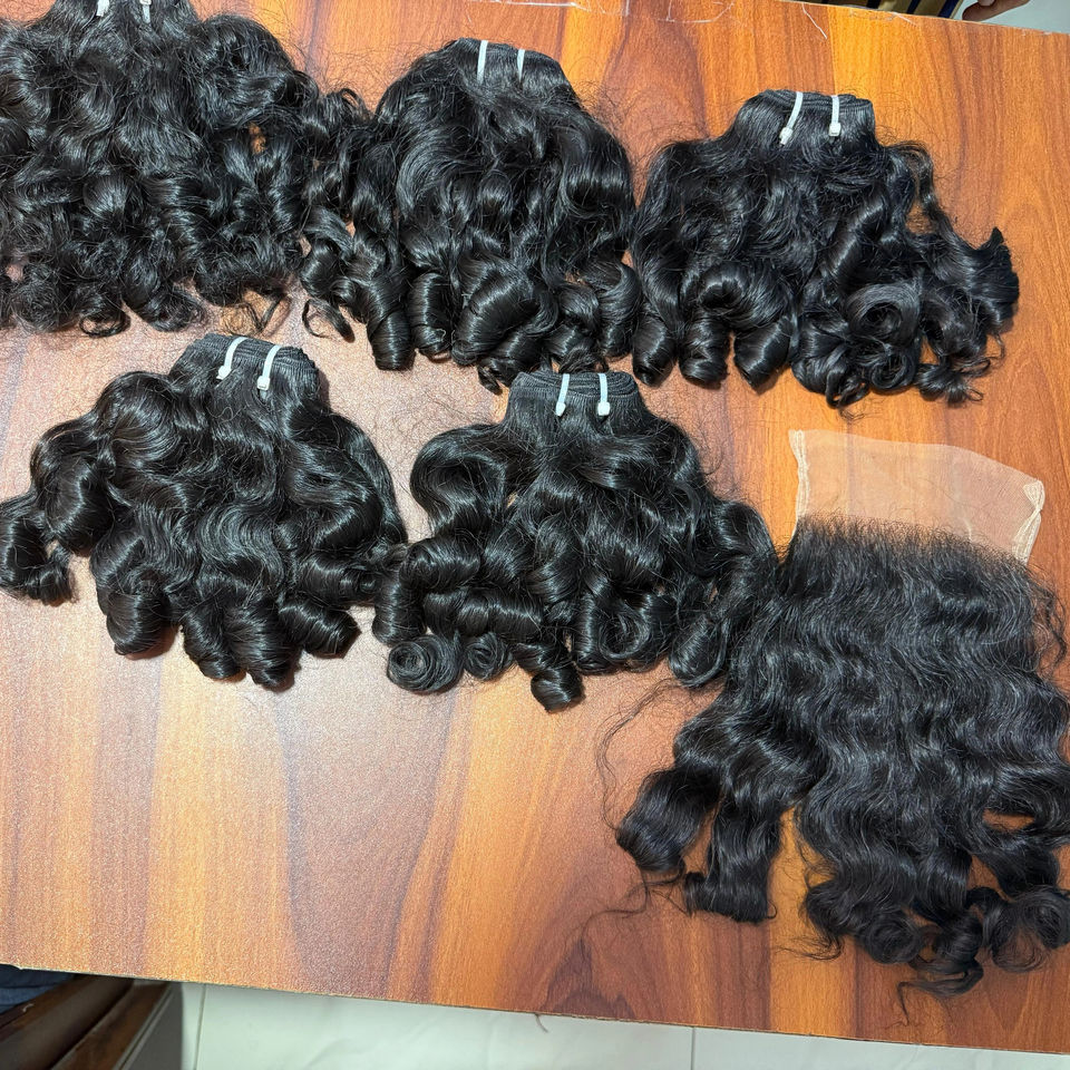ผมมนุษย์อินเดียแบบดิบธรรมชาติ แบบหยิกเล็กน้อย สำหรับต่อผมด้านหน้า